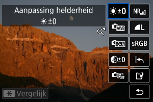 U kunt de helderheid van het beeld aanpassen met maximaal ± 1 stop in stappen van 1/3 stop.