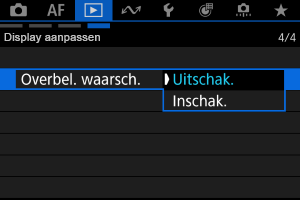 U kunt een knipperende weergave voor overbelichte gedeelten op het afspeelscherm. Voor meer detail in de knipperende gedeelten waarvoor u de gradatie waarheidsgetrouw wilt reproduceren, stelt u de belichtingscompensatie in op een negatieve waarde en maakt u de foto opnieuw voor een beter resultaat.