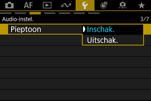 Hiermee wordt piepen ingeschakeld bij scherpstelling, tijdens aanraakbediening, enz.