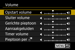 Het volume van camerageluiden kan worden aangepast.