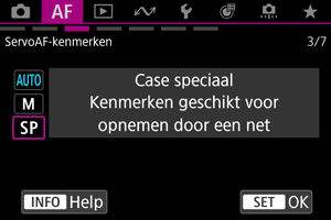 Selecteer [ : Case speciaal].  - Draai aan het instelwiel om [SP] te selecteren en druk vervolgens op .