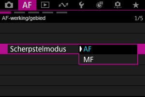 staat voor Manual Focus, oftewel handmatige scherpstelling. Automatische scherpstelling is uitgeschakeld.