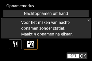 Voor nachtopnamen uit de hand zonder statief of soortgelijke apparatuur.
