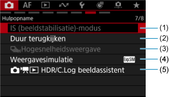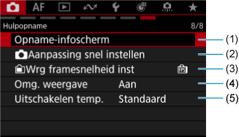 - (1) Opname-infoscherm