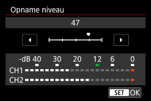 U kunt het geluidsopnameniveau aanpassen. Pas het niveau aan in [Opname niveau].
