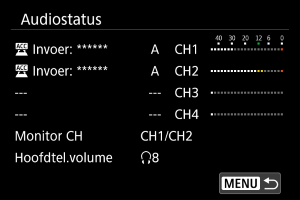 - [Monitor CH] geeft kanalen aan die zijn ingesteld in [Monitor CH opn.] voor [Hoofdtelefoon] in [