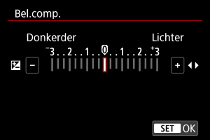 U kunt de belichtingscompensatie instellen naar de positieve of negatieve kant om beelden lichter of donkerder te maken in relatie tot de standaardbelichting die is bepaald door de camera.