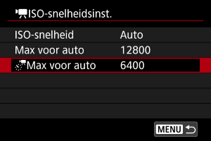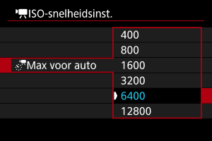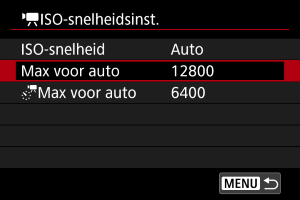 U kunt de maximumgrens voor ISO Auto bij video-opnamen instellen in de modus [], [