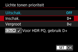 : Lichte tonen prioriteit] is ingesteld op [Uitschak.] wanneer [