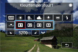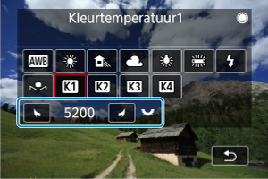 U kunt een waarde instellen voor de kleurtemperatuur van de witbalans.