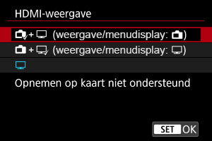 - Opname op kaart kan niet worden uitgevoerd met [HDMI-weergave] ingesteld op [