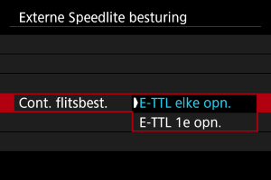 - Stel deze optie in op [E-TTL elke opn.] om voor elke opname een flitslichtmeting uit te voeren.