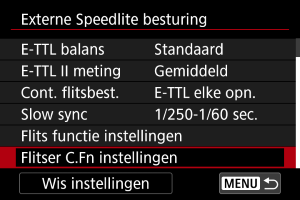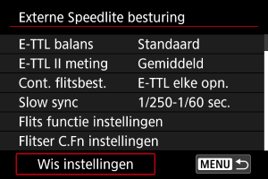 - Selecteer [Wis flitserinstellingen] of [Wis alle SpeedliteC.Fn's].