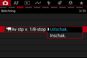 Diafragmawaarden kunnen worden ingesteld met in stappen van 1/8 stop voor video-opnamen met RF-lenzen. Beschikbaar in de modi [], [], [] of [] de opnamemodus.