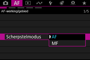 - U kunt [AF] of [MF] ook selecteren door op de toets