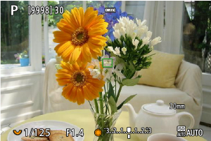 Bij opnamen met de scherpstelvergrendeling gebruikt u 1-beeld AF met een vast AF-punt en bepaalt u de compositie opnieuw voor de opname. De stappen zijn als volgt wanneer u de ontspanknop half indrukt om scherp te stellen.