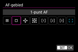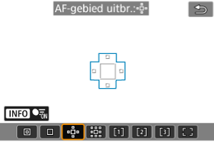Werking van het AF-gebied is als volgt. De hier getoonde schermen worden weergegeven wanneer u op de knop drukt die is toegewezen aan [AF-gebied] in [: Knoppen aanpassen voor opn.].