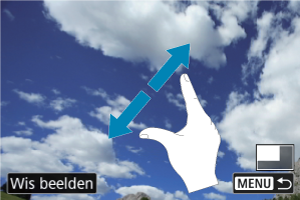 De camera beschikt over een touchscreen dat u kunt aanraken om het afspelen te bedienen. Ondersteunde aanraakhandelingen lijken op degene die gebruikt worden met smartphones en gelijksoortige apparaten. Druk eerst op de knop om afspelen via touchscreen voor te bereiden.