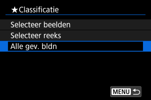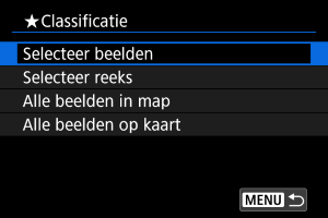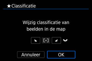 : Classificatie] de optie [Alle beelden in map] of [Alle beelden op kaart] selecteert, worden alle beelden in de map of op de kaart beoordeeld.