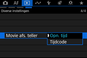 - Aan videobestanden worden altijd tijdcodes toegevoegd, ongeacht de instelling voor [Movie opn. teller].