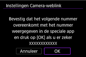 Bevestig dat het nummer in de speciale app wordt weergegeven.