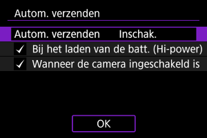 - [Wanneer de camera ingeschakeld is]: Automatische verzending start wanneer de camera wordt ingeschakeld.
