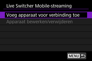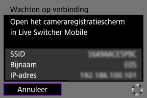 - Als de camera al met de smartphone is verbonden, wordt dit scherm niet weergegeven.