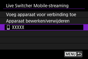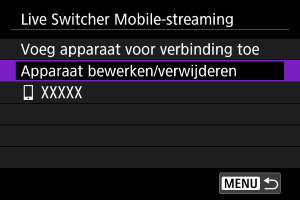 U kunt de bijnaam veranderen van apparaten waarmee de camera verbinding maakt.