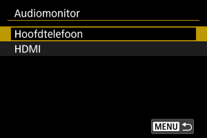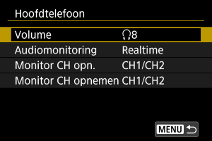 U kunt kiezen welke audio tijdens video-opname voor hoofdtelefoonuitvoer wordt gebruikt. Om audioruis in audio-opname te verminderen configureert u [Audioruisonderdruk.] ().