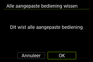 Door [: Alle aangepaste bediening wissen] te selecteren wist u alle persoonlijke voorkeuze-instellingen.