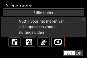 Wanneer u stilte nodig hebt, kunt u opnamen maken zonder pieptonen of sluitergeluiden.