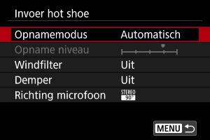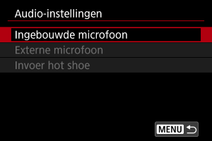 Configureer bij deze instellingen microfoons voor geluidsopname. Raadpleeg ook de instructiehandleiding van de microfoon bij het gebruik van microfoons die extern zijn of die zijn ontworpen voor een multifunctieschoen.