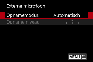 Instellingen configureren voor externe microfoons die gebruikmaken van de IN-aansluiting van de externe microfoon.