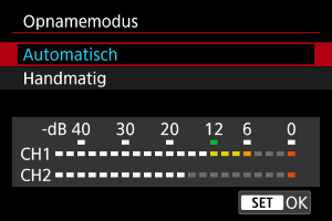 Het geluidsopnameniveau wordt automatisch aangepast. Automatische niveauregeling werkt automatisch in reactie op het geluidsniveau.