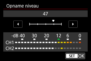 U kunt het geluidsopnameniveau aanpassen. Pas het niveau aan in [Opname niveau].