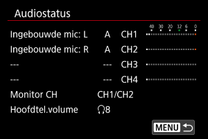- [Monitor CH] geeft kanalen aan die zijn ingesteld in [Monitor CH opn.] voor [Hoofdtelefoon] in [