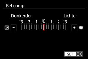 : Bel.comp.] (bij video's opnemen) en stel de hoeveelheid belichtingscompensatie op dit scherm in.