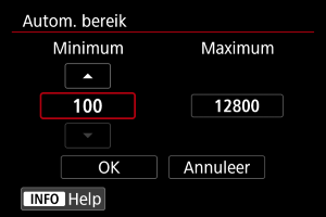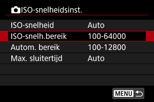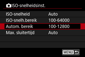 U kunt de het automatische ISO-snelheidsbereik instellen voor ISO Auto.