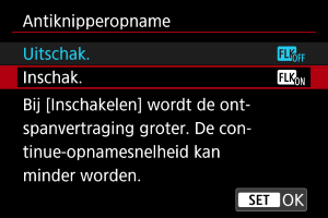 te drukken, [Antiknipperopname] te selecteren en op de knop