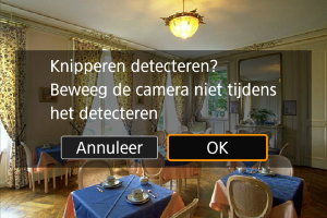 Doe het volgende als [Geen knipperen gedetecteerd] wordt weergegeven, of als schakelen tussen sluitertijden strepen niet wegneemt.