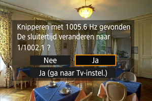 De camera detecteert lichtbronnen van 50,0-2011,2 Hz en geeft een geschikte sluitertijd weer voor opnamen onder lichtbronnen die op hoge frequenties flikkeren. Vervolgens kunt u op de aangegeven sluitertijd overschakelen.