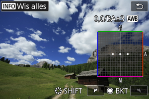 - U kunt ook de witbalanscorrectie en AEB samen met witbalansbracketing instellen.