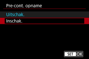 - Door het inschakelen van precontinue opname wordt flitsfotografie uitgeschakeld.
