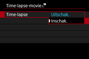 - Om het opnemen van time-lapse-video's te annuleren stelt u [Time-lapse] in op [Uitschak.].