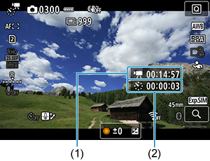 Geeft de video-opnametijd aan (gelijk aan de vereiste tijd voor afspelen).