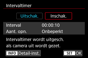 - Als u intervaltimer-opnamen wilt stopzetten, selecteer dan [Uitschak.] of zet de aan-/uitschakelaar op