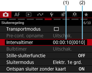 De instellingen voor intervaltimer worden weergegeven op het menuscherm.
