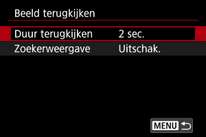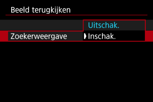 - Instellingen van [Zoekerweergave] worden van kracht wanneer [Beeld terugkijken] is ingesteld op een andere optie dan [Uit].