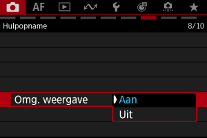 - Selecteer [Uit] als u de weergave niet wilt omkeren terwijl het scherm naar het onderwerp is gericht.