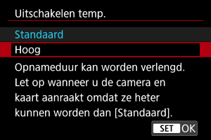 : Uitschakelen temp.] op [Hoog] is ingesteld.